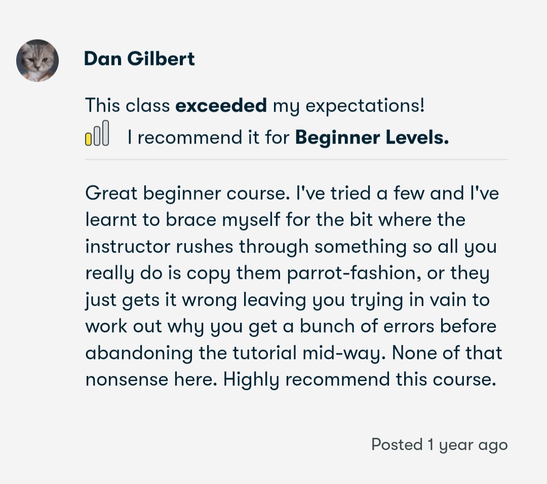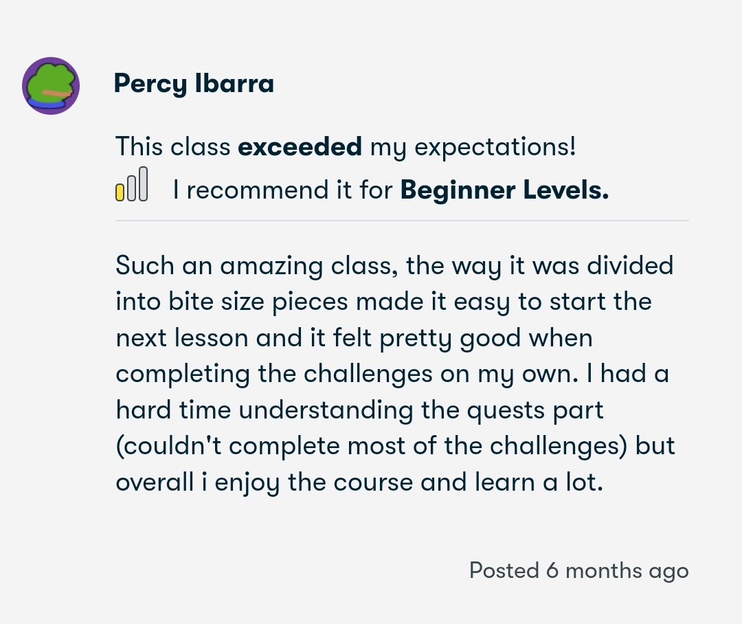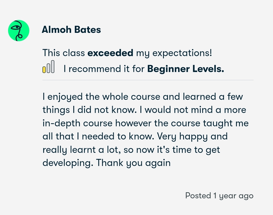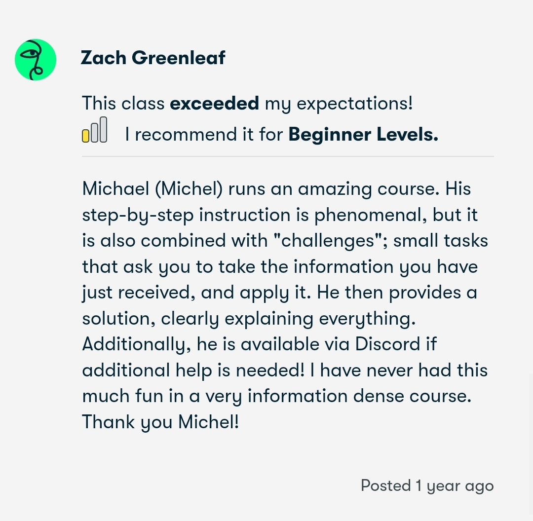 Avoid the mistake that traps 99% of people: rushing into a bootcamp without a solid foundation. Many feel lost and discouraged in the beginning because of this, and it's why most people quit within a few weeks. Don't make this costly error! We focus on building a strong, solid foundation from which you are guaranteed a smooth and rewarding learning journey.