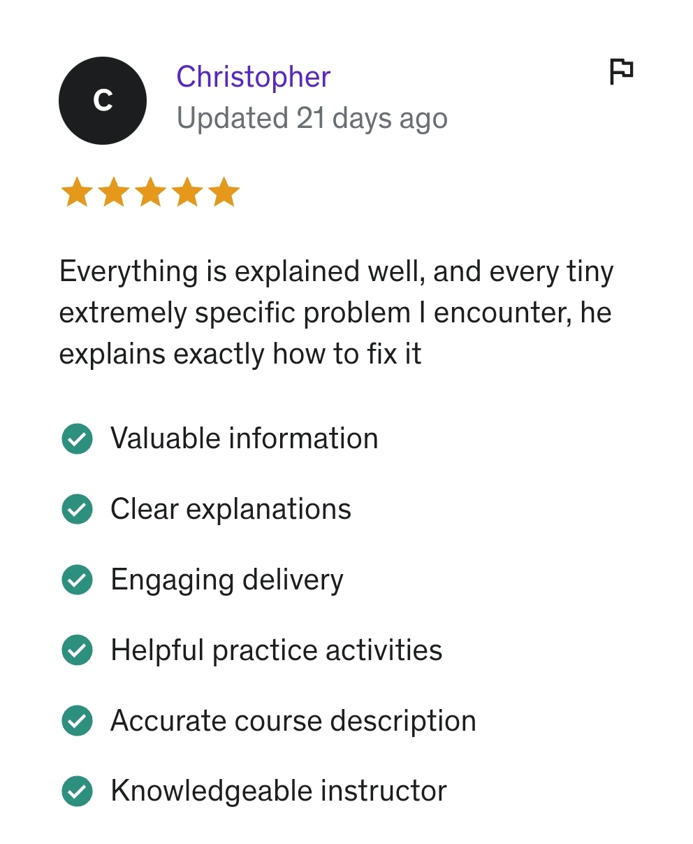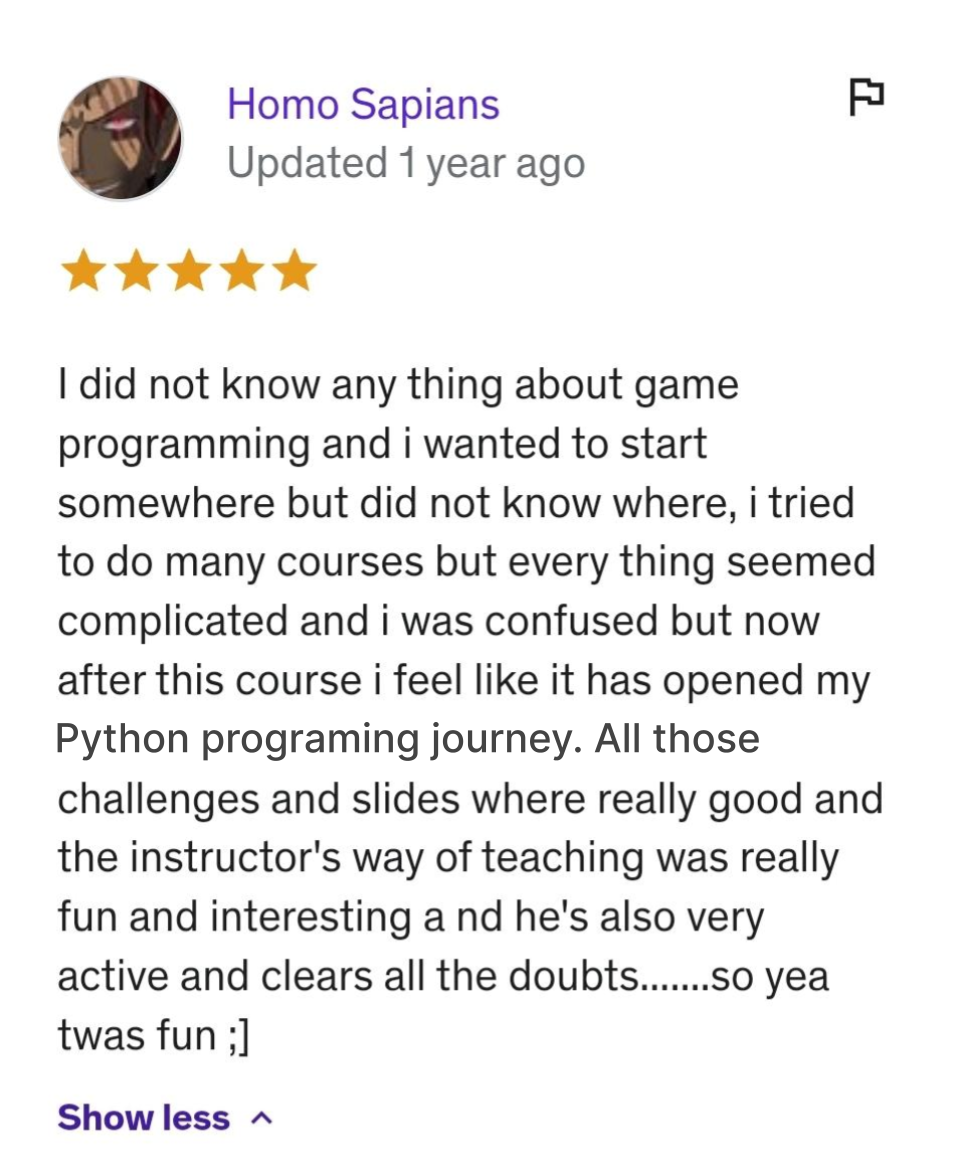 After years of dedicated experience in the field of private Python tutoring, coupled with valuable feedback from thousands of students, constructive criticism, and our unwavering commitment to creating the most efficient Python programming curriculum, we proudly present our meticulously crafted MasterClass